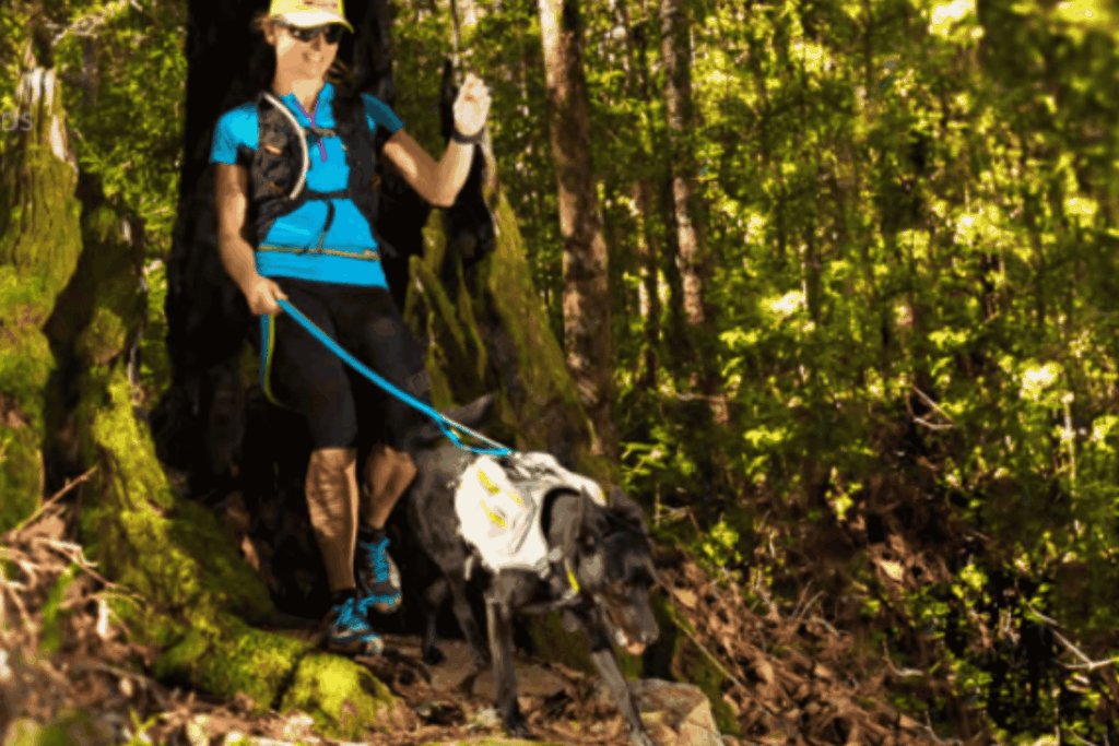 It may sound strange and we do get a lot of strange looks, but we have a Ruff Wear Single Track Ruck sack for Bubble, which is perfect for longer runs together. I can fill up her pockets with food (she likes salty potato chips on her run) and I have a collapsible water bowl and bladder for her, too. If I think she is low on water then I’ll encourage her to dip into the creek to cool down with her stomach. After particularly long runs on hot days, I give her electrolytes in cooled water, which seems to help with her stiffness the next day.